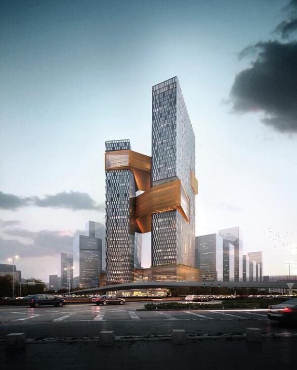 腾讯滨海大厦 包括一座248米高50层楼的南塔楼,一座194米高41层楼的北塔楼和三条连接两座塔楼并在内部设置共享配套设施的“连接层” 草莓影视在线,腾讯滨海大厦相当于3个腾讯大厦,占地面积18650平米,由南北两座塔楼组成。