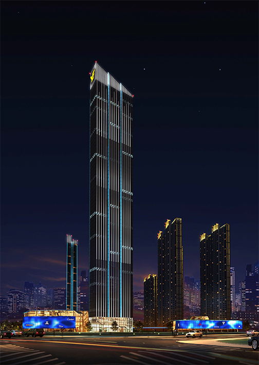 武汉硚口金三角 集高端办公,住宅,商业一体化的建筑综合体 草莓影视在线,建筑主楼为330米超高层,灯光充分遵循建筑竹节特点,彰显现代感使其成为城市地标。